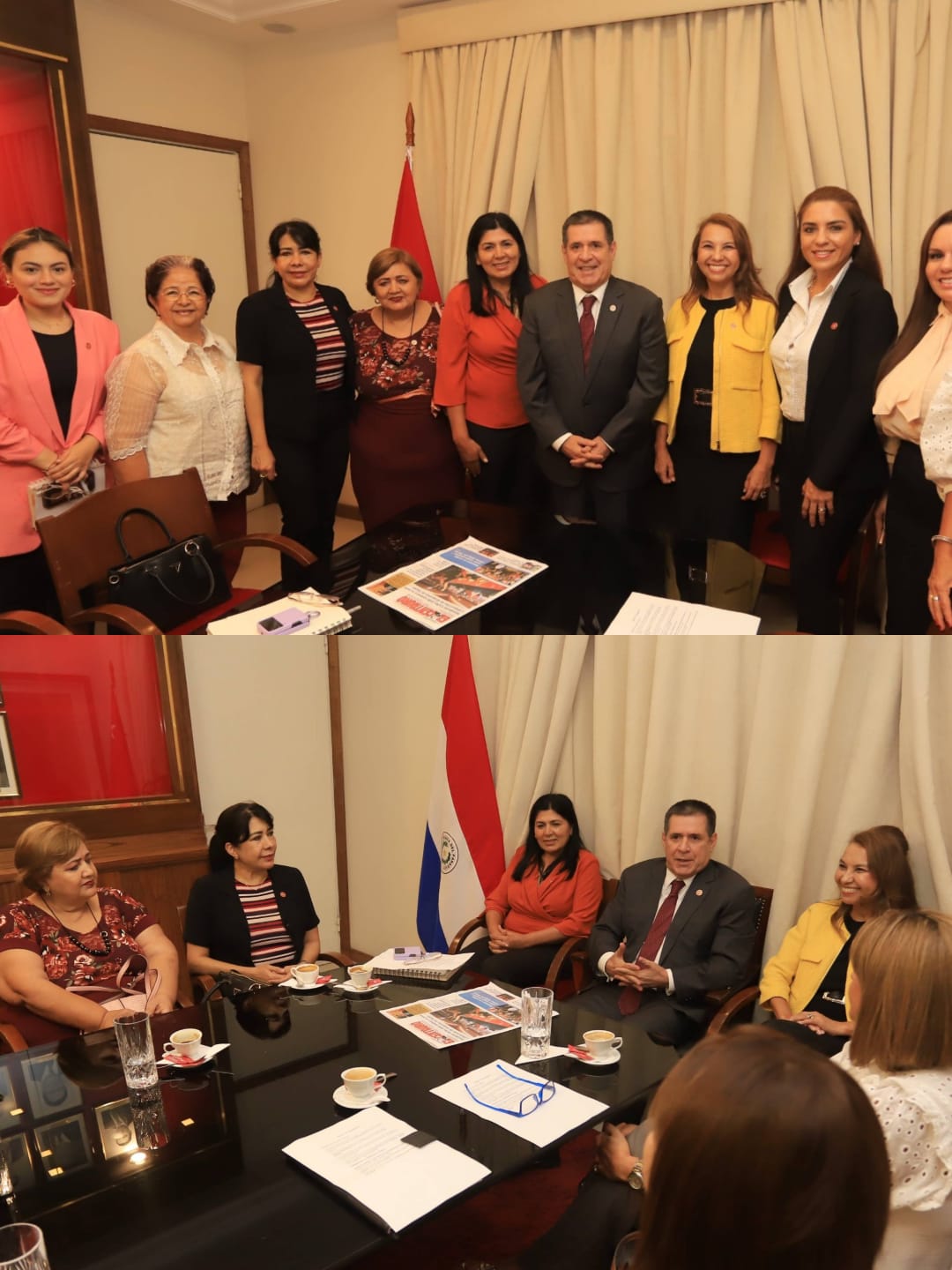 El presidente de la Junta de Gobierno, Don Horacio Cartes, recibió hoy a miembros de la Comisión de Mujeres de la Junta de Gobierno, encabezada por su titular, Pilar Medina, que prepara varias actividades por la semana de la mujer paraguaya para rendirles un homenaje a todas ellas.